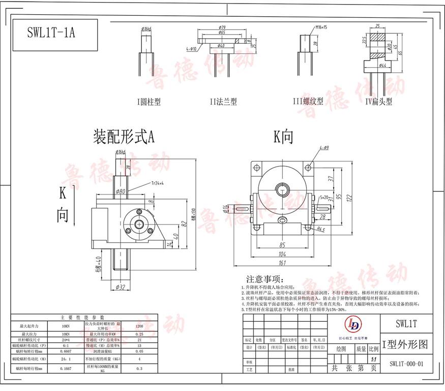 絲桿升降機-SWL蝸輪絲桿升降機圖紙-魯德傳動