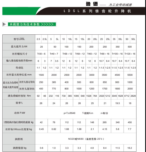 LDSL錐齒輪絲桿升降機技術參數
