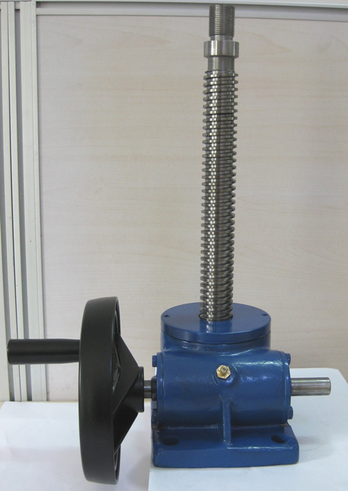 絲杠升降機,蝸輪絲桿升降機可以使用電動機或其他動力帶動,也可以是裝配手輪或搖把手動。如果采用手動調節,我們建議客戶選擇慢速的蝸輪絲桿升降機,因為在外力驅動時,由于轉速不一樣大,絲桿升降機的扭矩力也不一樣,慢速的相對要大一些,這樣扭矩力會更大,因此建議選用慢速的為好,操作起來會省力很多。