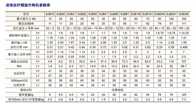 滾珠絲桿升降機目前我公司可提供兩個系列的產品供客戶選型即:JWB系列與SJB系列兩種型號。兩種系列產品各有特點,SJB系列采用方形球磨鑄鐵殼體,相對JWB系列來說安裝更為方便,安裝空間要求相對較小,多種速比可選,速度更快,效率_。