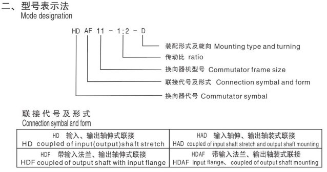HD螺旋錐齒輪轉向器箱體形狀為六面體,能適應不同方位的安裝使用。共有七種規格,選型范圍大,輸出軸型式多樣,可滿足多種場合需要,可實現減速和增速兩種傳動方式。當速比不為1:1時,橫軸輸入、縱軸輸出為減速,縱軸輸入、橫軸輸出為增速。換向器可正、反運轉,低速或高速傳動平穩,而且噪音低,承受力大。