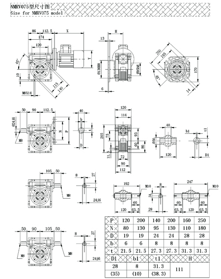 NMRV075電機功率:0.37KW~2.2KW;