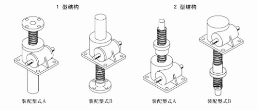 結構型式:1型-蝸輪與螺桿為螺紋聯接,螺桿作軸向運動;